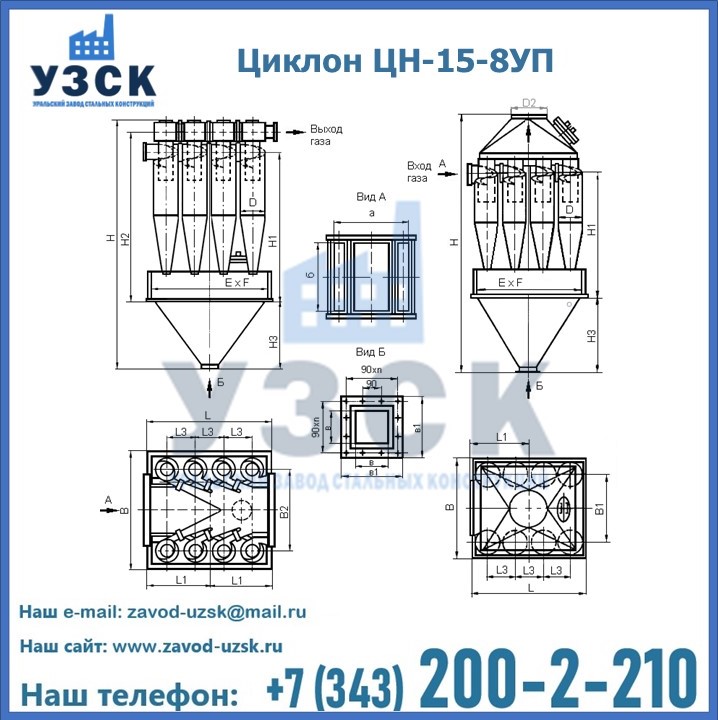 Завод «УЗСК» в Надым предлагает большой выбор циклонов ЦН-15-500×8УП и прочих устройств, полностью укомплектованных и готовых к эксплуатации. Мы гарантируем соответствие оборудования всем требованиям ГОСТ и ТУ, износостойкость и высокую производительность предлагаемого оборудования. Уральский Завод Стальных Конструкций изготавливает и продает надежное, эффективное и производительное оборудование, имеющее длительную гарантию и большой эксплуатационный ресурс. Если требуется изготовить циклон нестандартных размеров, то такой вариант выполнения заказа тоже предусмотрен, так как предприятие имеет собственные производственные площади и надежных поставщиков. На все поставляемое или производимое оборудование имеются чертежи и прочая техническая документация. Заказать и купить циклоны или прочее оборудование высокого качества и по доступной цене можно через наш сайт или по указанному в разделе «Контакты» телефону.